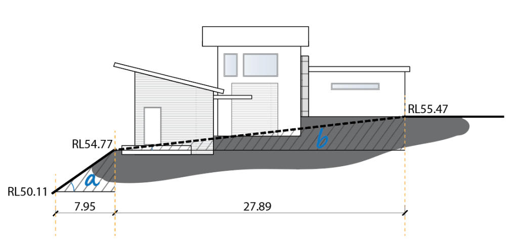 θ=30.38°, over 2.5° however over a distance of less than 8m. Even if this cross-section was over 8m it is not within the area where the proposed dwelling will be sited