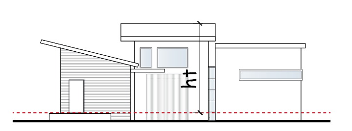 The height is dimensioned from the highest point vertically down to the point of intersection at natural ground level ground level